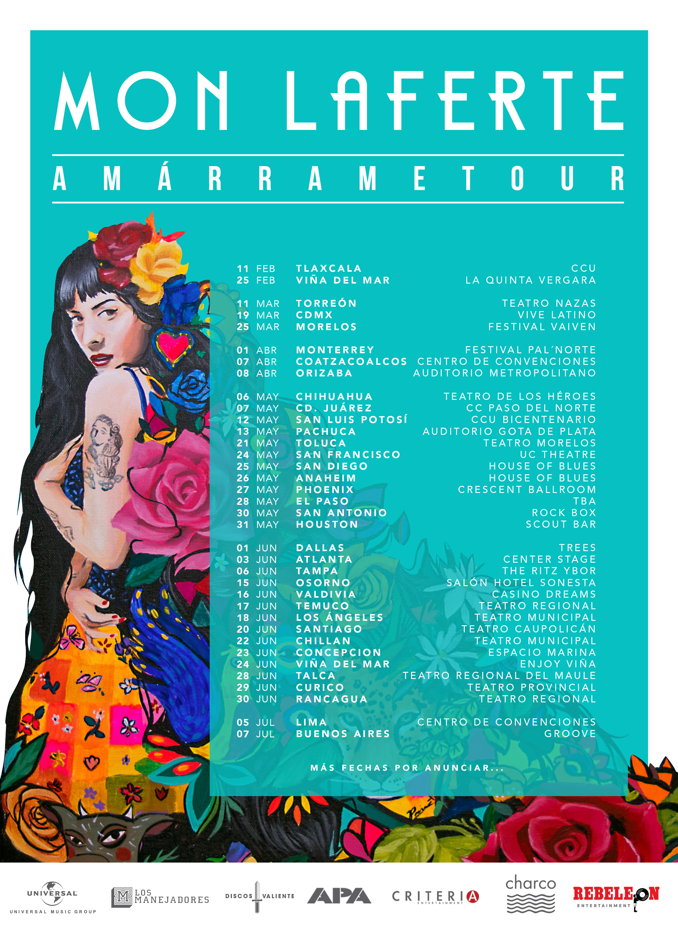 Una extensa gira por cinco países anunció la cantante nacional Mon Laferte, para celebrar el lanzamiento de su sencillo "Amárrame" junto a Juanes.