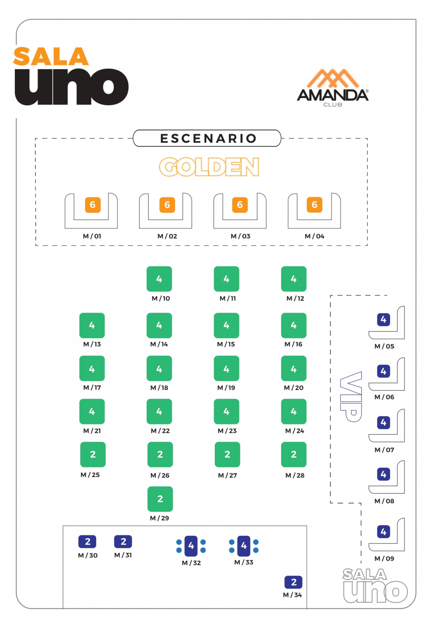 Dentro del Club Amanda el público será dispuesto en mesas ubicadas a distancia y con capacidad para cuatro personas. Las entradas dan derecho al uso de una de las mesas y sus valores van desde los $40.000 a los $150.000 en Passline.