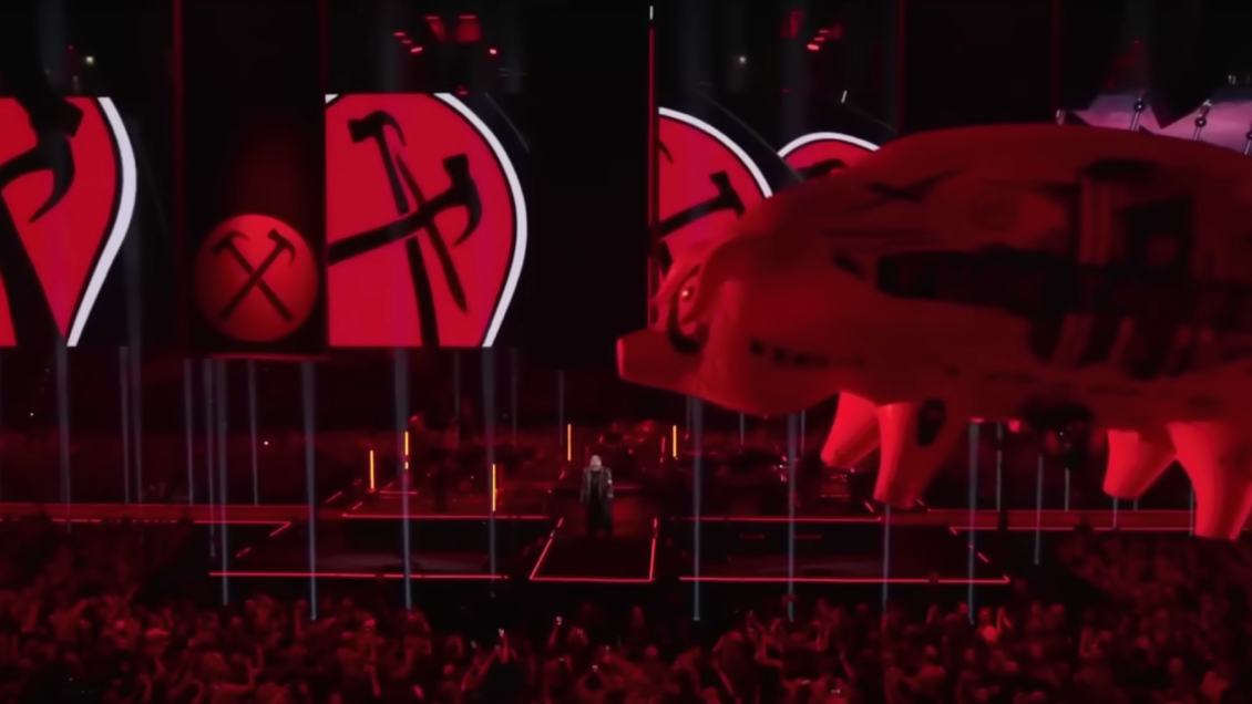 También utiliza el clásico cerdo volador de Pink Floyd con el símbolo de la estrella de David, asociada al judaísmo.
