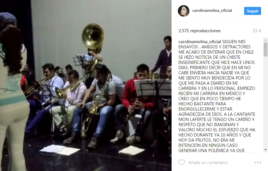 Previo a esta explicación, Molina publicó un mensaje para los fanáticos de Mon Laferte que la criticaron duramente por su chiste. "Como yo no tengo ni carrera, ni talento, ¿que hacen aquí las alharacas y lloronas?", disparó en la fotografía que luego borró.