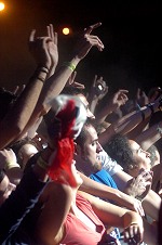 Corría cerca de media hora de presentación de la banda de Vedder, Stone Gossard, Mike McCready (ambos en guitarras), Jeff Ament (bajo) y Matt Cameron (batería), cuando la euforia generó sus primeros estragos, parte del público de la galería norte, la más lejana al escenario, hizo la presión suficiente para que las rejas cedieran e ingresaron al sector de cancha.