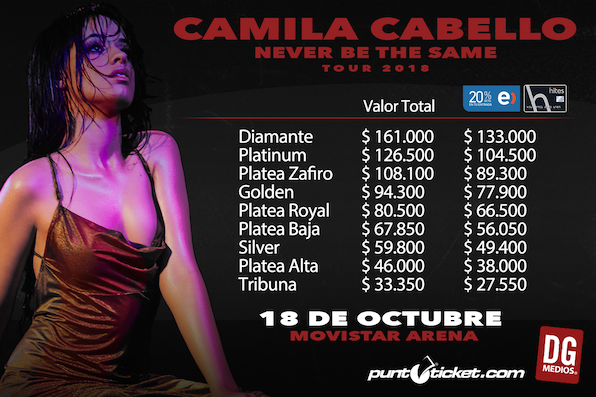 La venta general de entradas para el concierto de Camila Cabello comenzará este 1 de agosto con precios que parten desde los $27.550.
