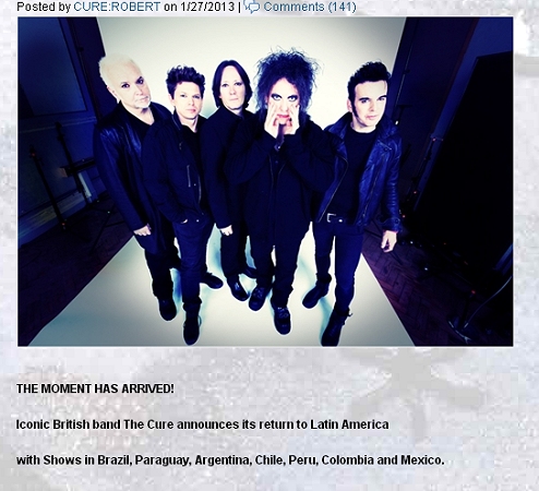 Robert Smith, el líder de la banda, consignó en el mismo sitio unas palabras sobre el tour sudamericano: "Estamos delirantemente felices de volver a Sudamérica finalmente. ¡Hemos estado alejados mucho tiempo! Tocaremos shows de más de tres horas y tenemos toda la intención de hacer ¡el más memorable tour de The Cure de la historia!".