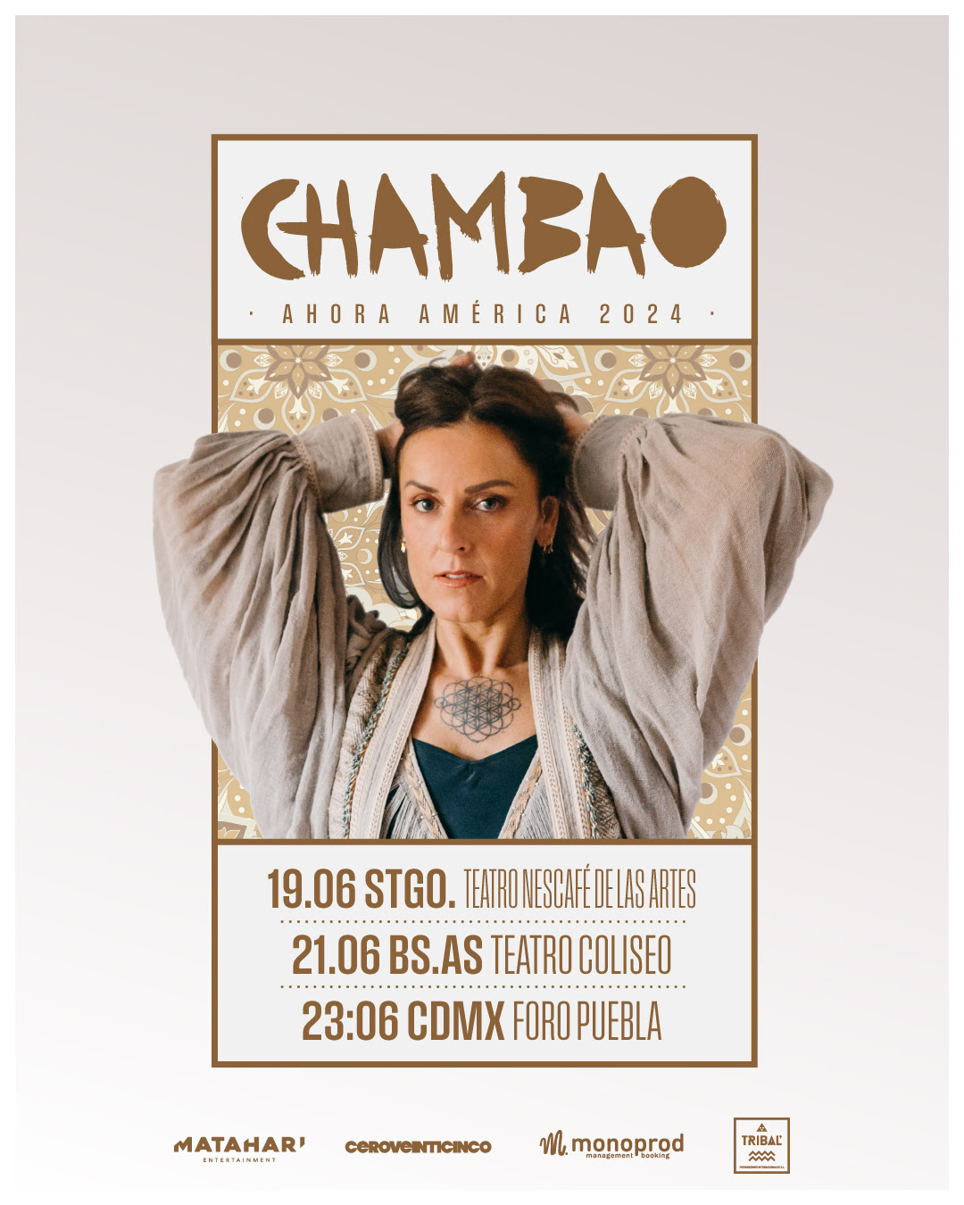 El grupo español Chambao anunció su "Ahora América Tour 2024", con tres shows: en Santiago, Buenos Aires y Ciudad de México; que marcará su primer concierto en Chile en una década, luego de presentarse en 2014 en un festival en el Parque Alberto Hurtado.