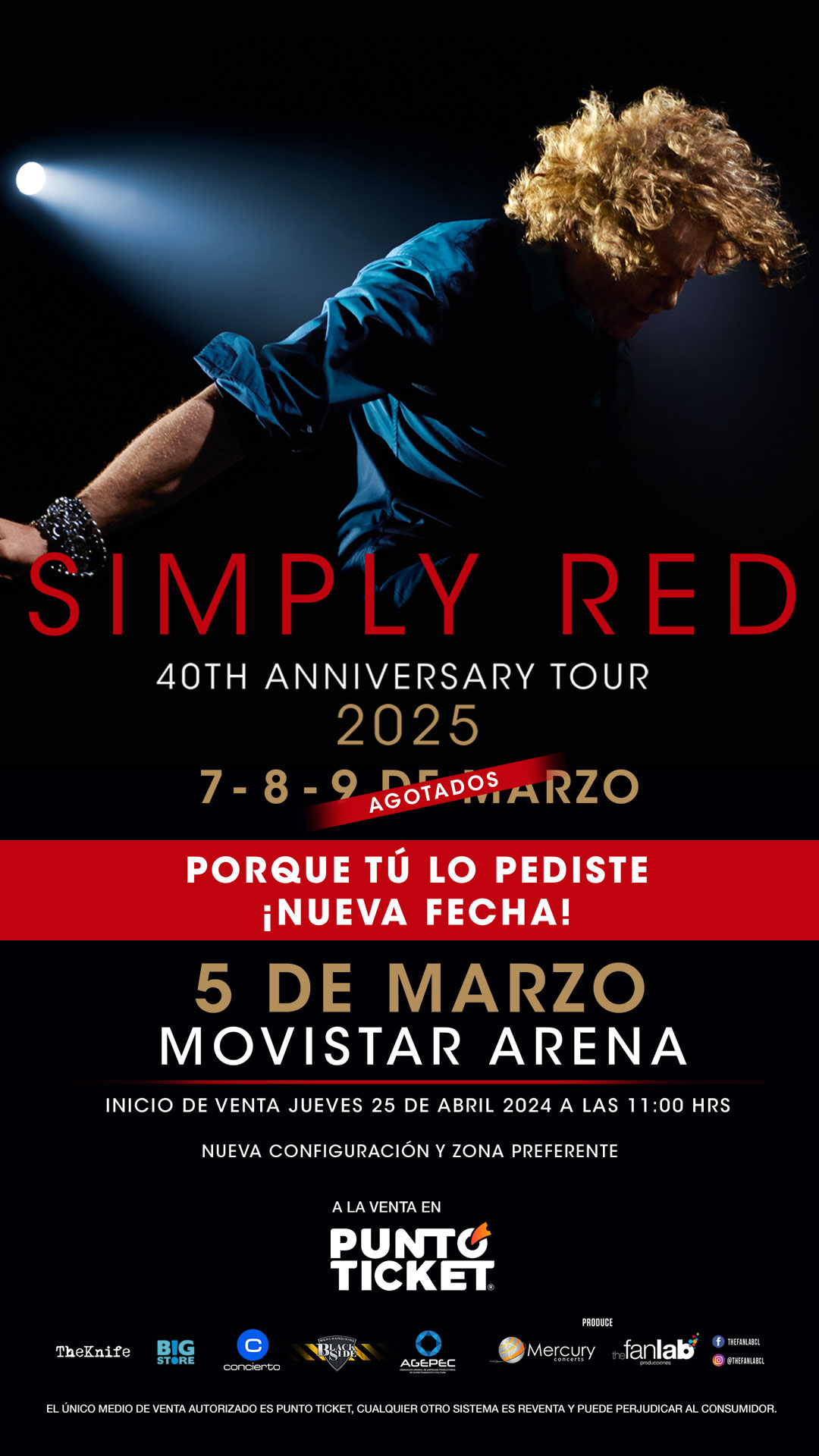 La venta de entradas para el cuarto show de Simply Red en Chile comenzará este jueves 25 de abril a las 11:00 horas a través de Puntoticket.