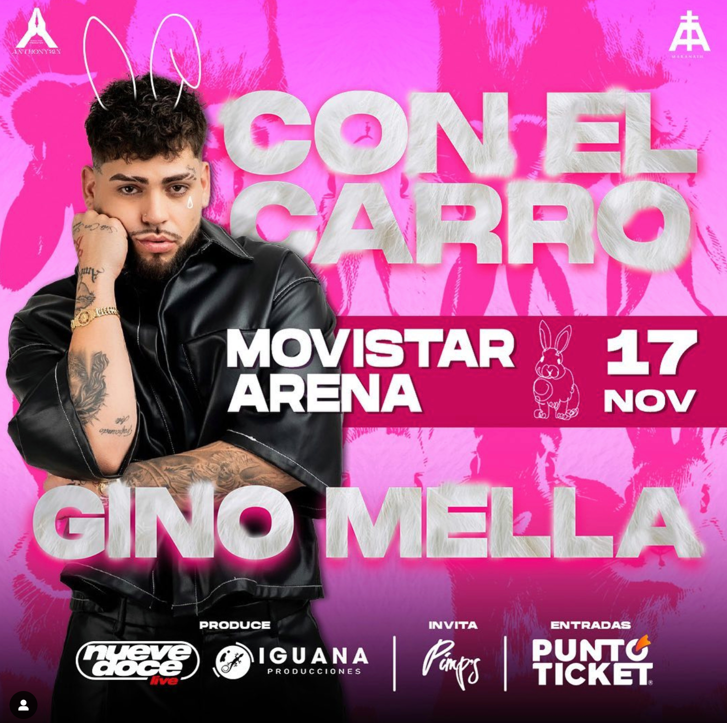 El espectáculo original de Gino Mella en el Movistar Arena se concretará el próximo 17 de noviembre. En dicho mes ese escenario también recibirá a artistas como Farruko, Pablo Chill-E y Bad Gyal, entre otros.