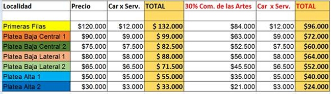 Las nuevas entradas se pondrán a la venta a través del sistema PuntoTicket a partir del lunes 26 de marzo al mediodía y los valores son los siguientes: