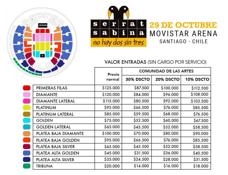Las entradas se pondrán a la venta este lunes 6 de mayo al mediodía a través del sistema Puntoticket y sin cargo en la Comunidad de las Artes (Providencia 1266)