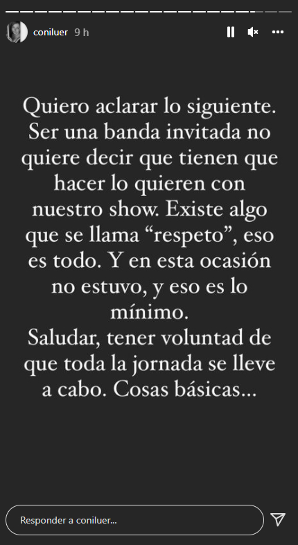 En tanto, Coni Luer dijo que "la experiencia de tocar con Miranda ha sido una de las más desagradables de mi vida profesional. Nuestra voluntad jamás será boicotear el show de otro artista".