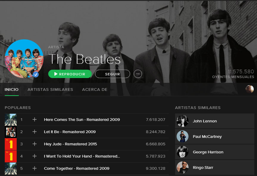 La gente sigue escuchando a los Beatles a lo grande en Spotify - más de 250 millones de reproducciones hasta ahora - y ni siquiera se ha cumplido un mes desde su lanzamiento.