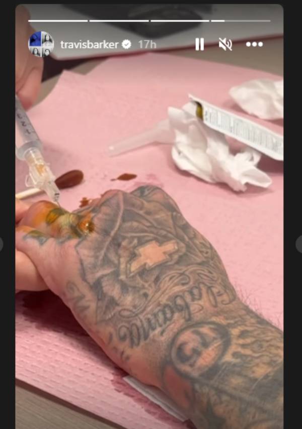 El baterista Travis Barker de Blink-182 reveló imágenes de una lesión en uno de sus dedos a semanas de que se presente en Lollapalooza Chile 2023.