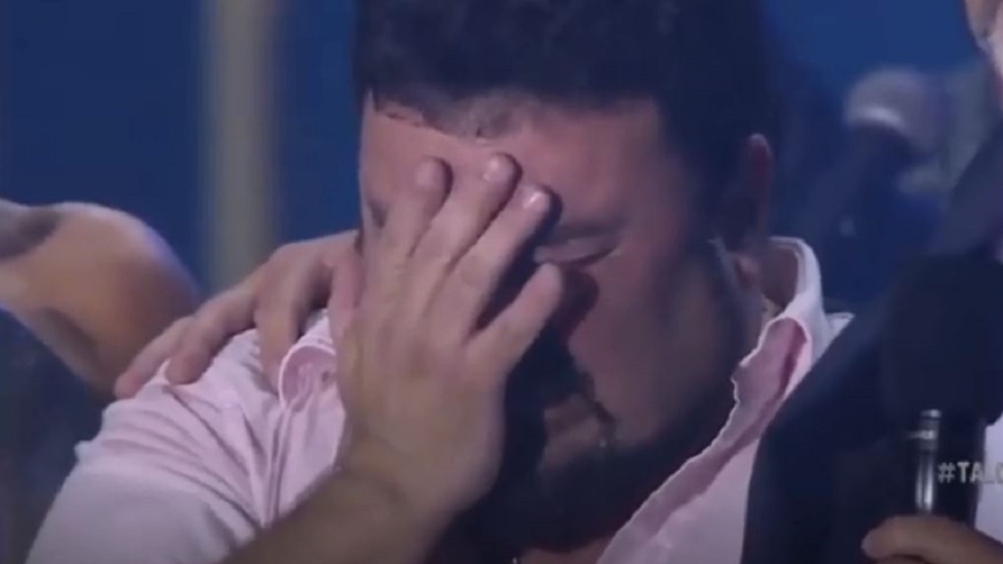 Hacia el final del show de Amar Azul en el Festival de Talca, el vocalista Miguel Ángel no pudo contener las lágrimas de emoción mientras conversaba con los animadores.