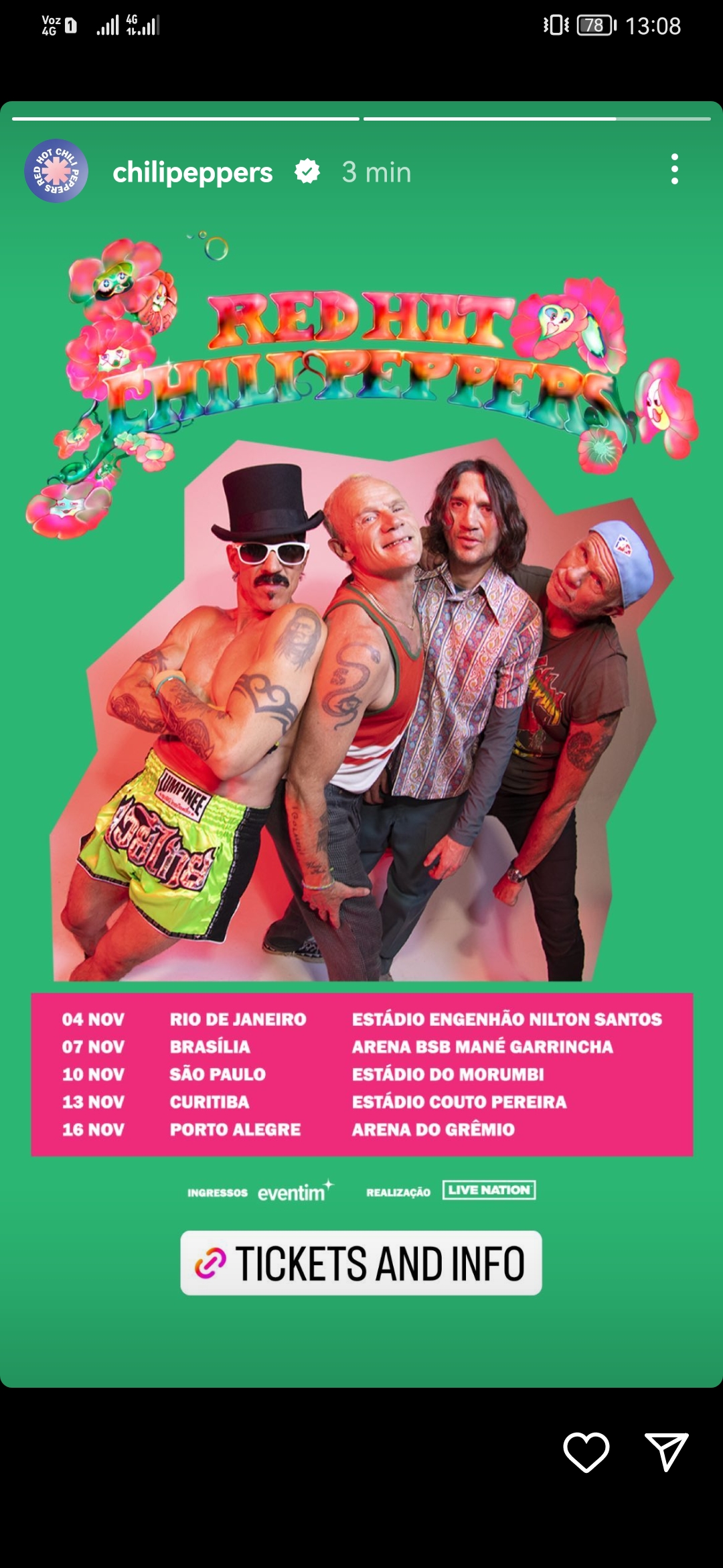 Los californianos anunciaron una serie de shows en Brasil entre el 4 y el 16 de noviembre, pasando por ciudades como Rio de Janeiro, Sao Paulo y Porto Alegre, entre otras.