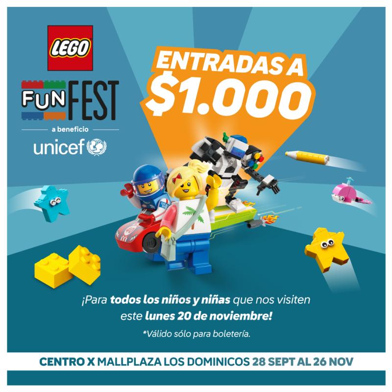 El lunes 20 de noviembre el LEGO Fun Fest celebrará el Día Mundial de la Infancia con entradas a sólo 1.000 pesos, para niños y niñas menores de 18 años; recaudación que irá destinada a apoyar los programas de Unicef.