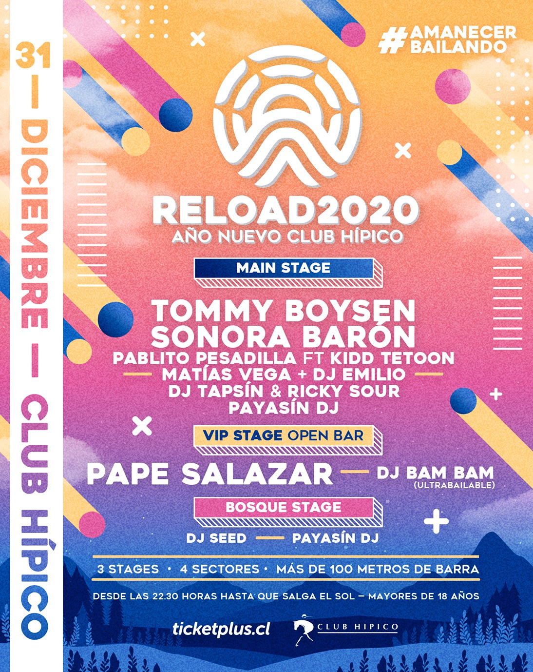 Pese a que varios eventos fueron cancelados por la crisis social, este Año Nuevo no se quedará sin festejos. Uno de ellos se producirá en la ya tradicional Fiesta Reload que vuelve a aterrizar en el Club Hípico.