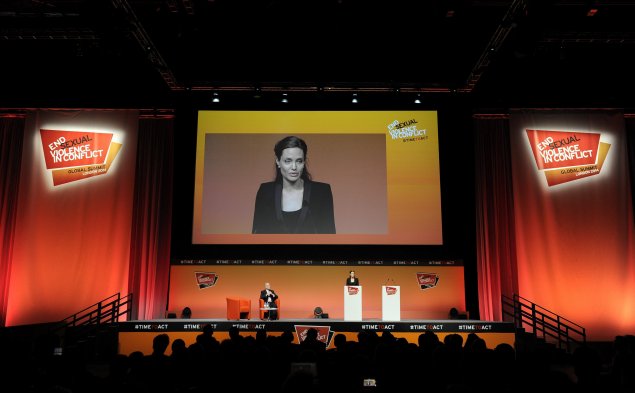 La actriz Angelina Jolie pidió este jueves atender a los supervivientes "abandonados" de la violencia sexual y combatir "la injusticia" que se deriva de utilizar ese tipo de abuso como arma de guerra. Acompañada de Brad Pitt pronunció un discurso ante los delegados de más de cien países a la Cumbre Global Contra la Violencia Sexual en conflicto, donde se analizará un protocolo para combatir esa lacra.