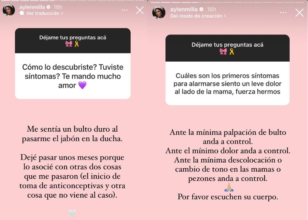 Tras esta revelación, la exchica reality se ha sincerado sobre su estado de salud respondiendo preguntas en Instagram, donde le consultaron cuáles fueron los primeros síntomas que la alertaron sobre esta enfermedad.