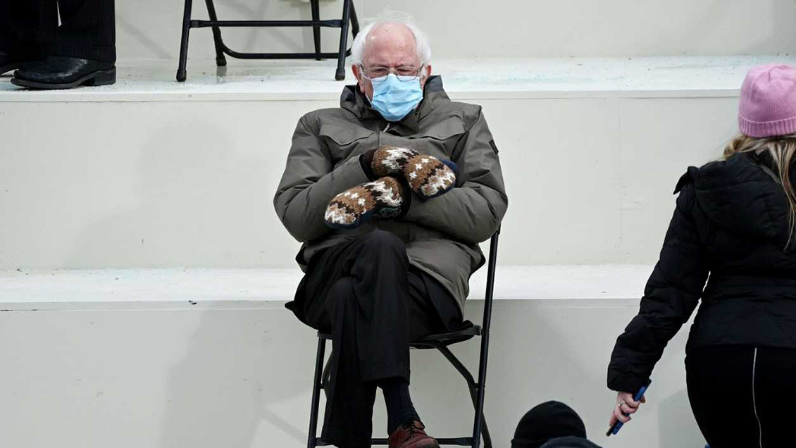 Con un abrigo, un par de guantes y una mascarilla protectora, Sanders se hizo viral al transformarse en un meme que está sentado en todas partes.