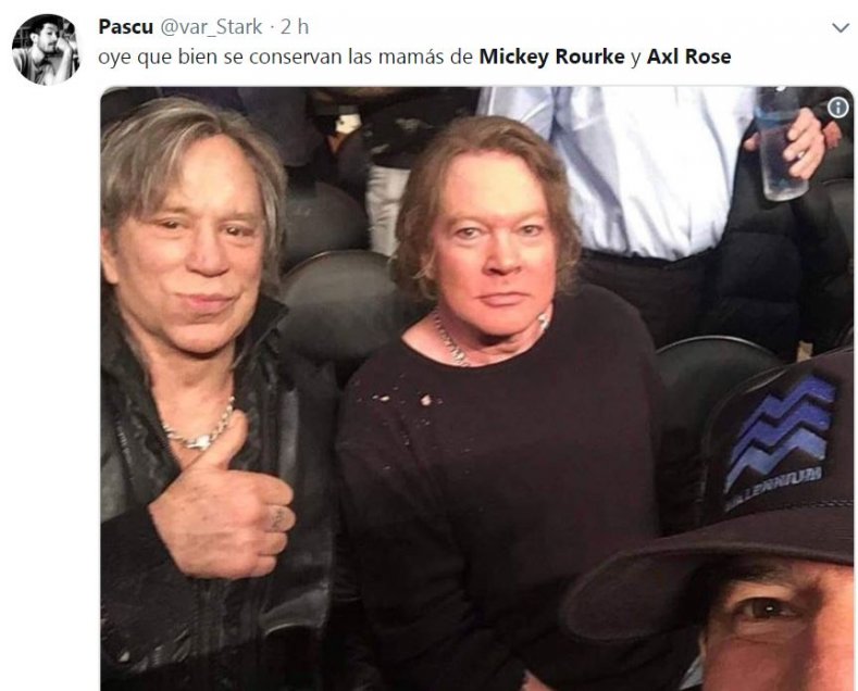 El actor Mickey Rourke y el cantante de Guns N' Roses, Axl Rose, fueron captados juntos en una fotografía y su aspecto desató cientos de bromas y memes.