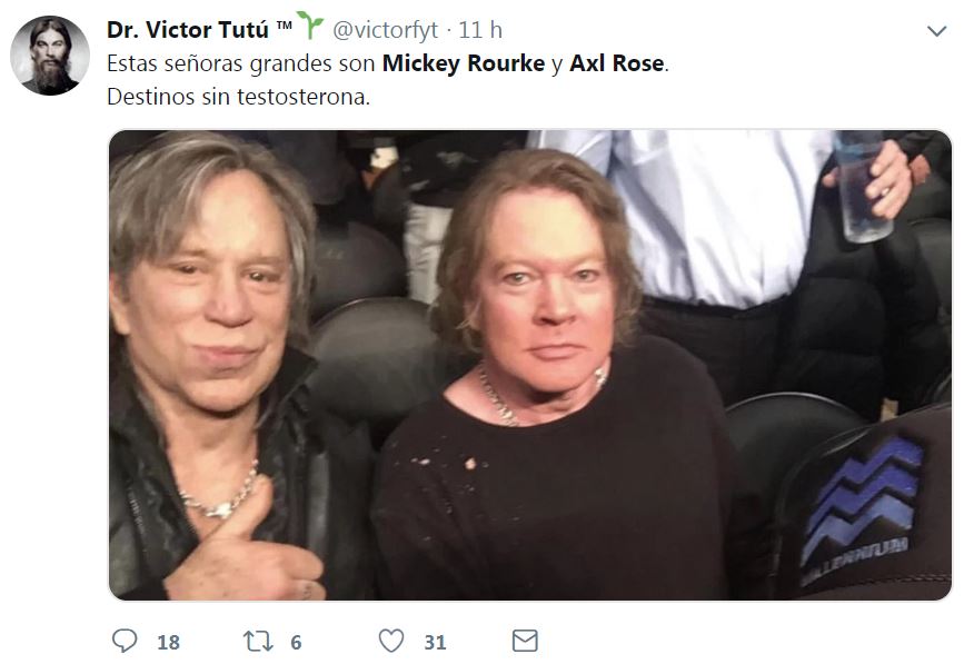 El actor Mickey Rourke y el cantante de Guns N' Roses, Axl Rose, fueron captados juntos en una fotografía y su aspecto desató cientos de bromas y memes.