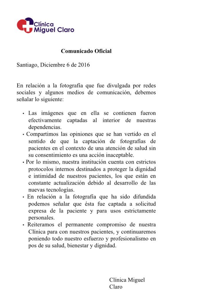 Además de aclarar el origen de la instantánea, la clínica aseguró que la mujer si vio vulnerados sus derechos: "Compartimos las opiniones que se han vertido en el sentido de que la captación de fotografías de pacientes en el contexto de una atención de salud sin su consentimiento es una acción inaceptable".