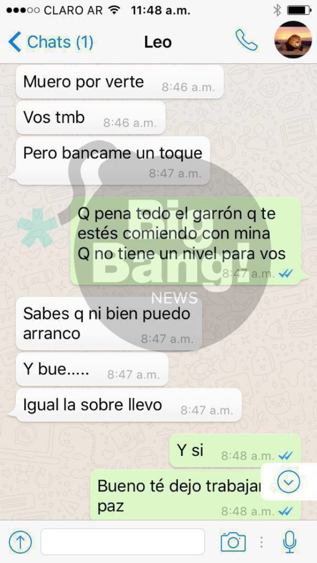 La farándula argentina reveló conversaciones de la pareja de la modelo con su supuesta amante.
