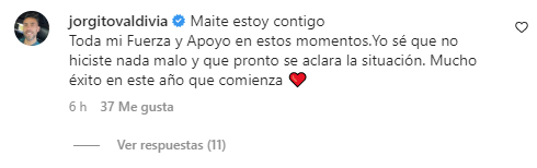Ante eso la diputada se volvió blanco de críticas, por lo que el ex Colo Colo salió a respaldarla públicamente. "Maite estoy contigo. Toda mi fuerza y apoyo en estos momentos", le escribió el "Mago" en su cuenta de Instagram.
