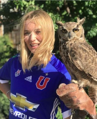 La modelo y reina del festival de Viña, Kika Silva, sorprendió a sus seguidores de Instagram en una serie de fotos junto a un búho magallánico y posando con la camiseta del equipo de sus amores, Universidad de Chile.