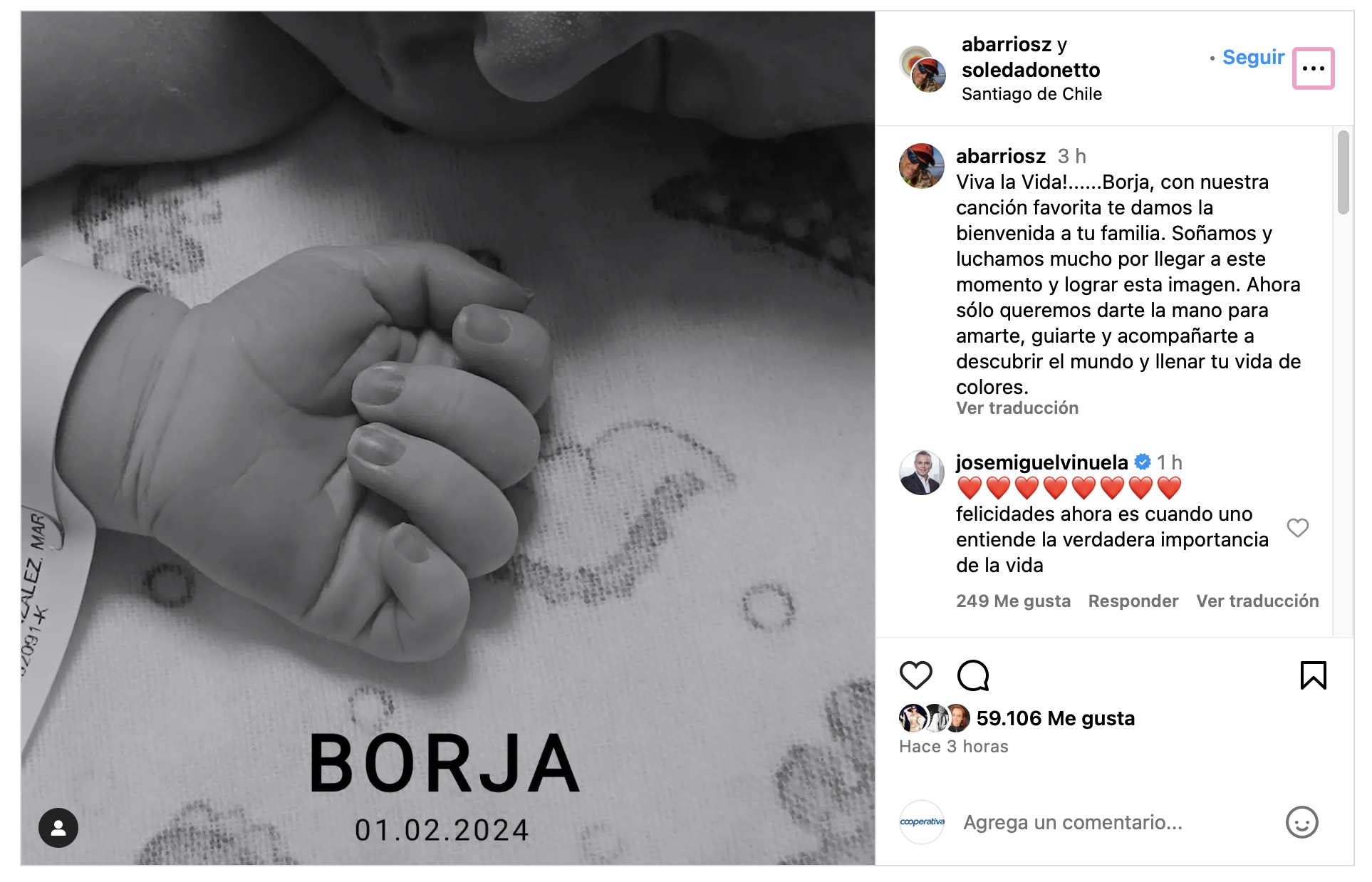 "¡Viva la Vida! Borja, con nuestra canción favorita te damos la bienvenida a tu familia. Soñamos y luchamos mucho por llegar a este momento y lograr esta imagen", escribieron.