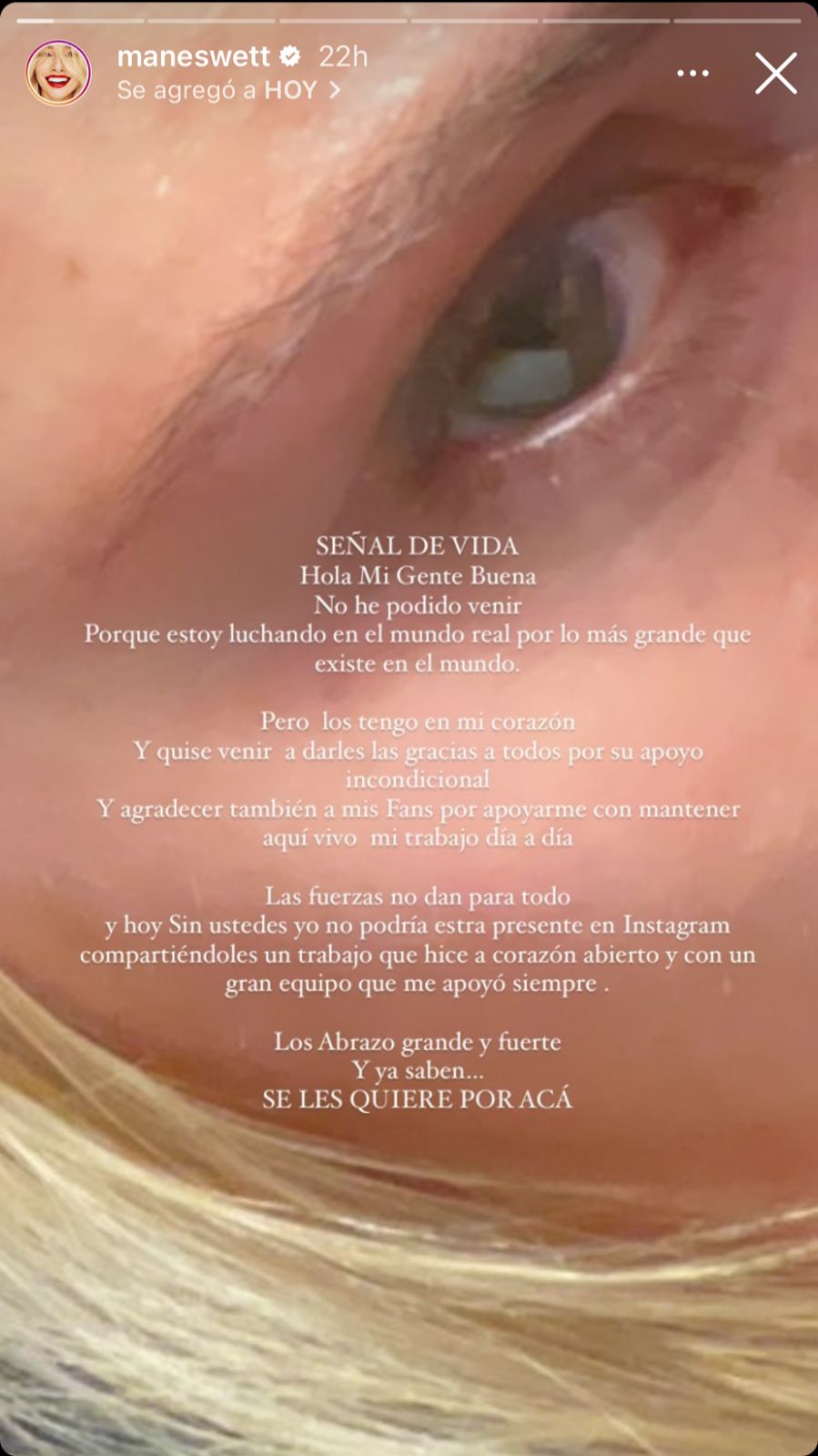 Mane Swett reapareció en redes sociales con desgarrador mensaje