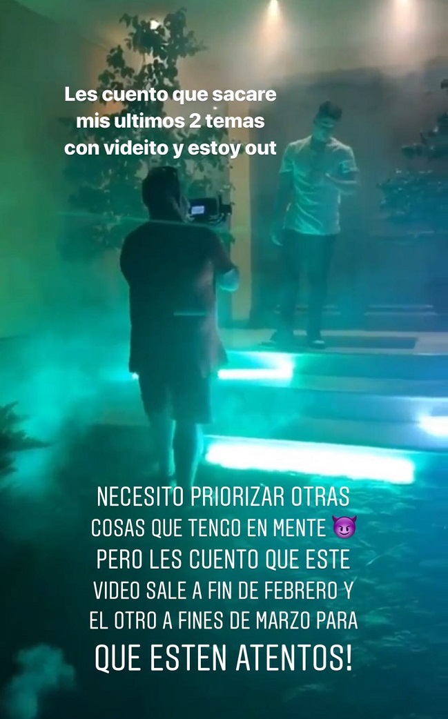 Calderón detalló que solo liberará dos canciones más, en febrero y marzo, y suspenderá su incursión en la música, al menos por un tiempo.