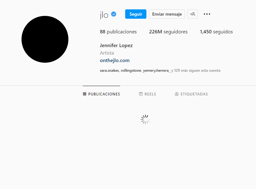 En Twitter y TikTok, donde Lopez tiene casi 70 millones de seguidores más, se mantuvieron las publicaciones pero se reemplazó la foto de perfil por una imagen en negro.