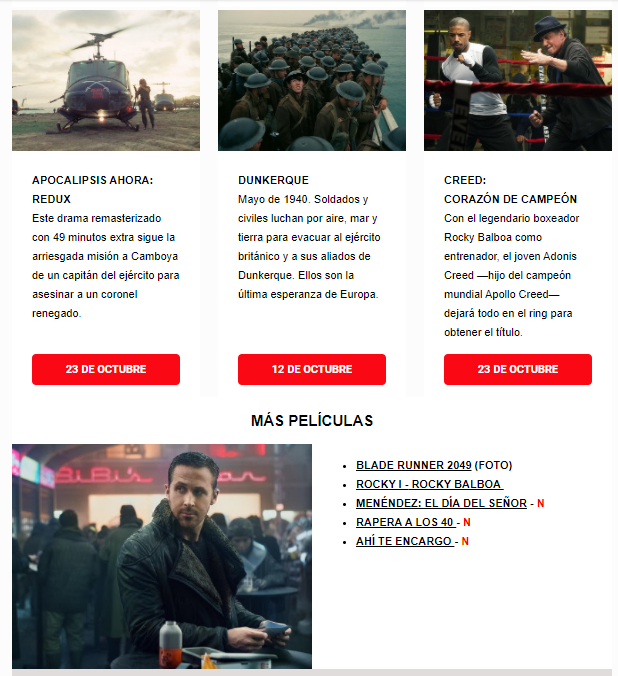 Este mes también marcará el arribo de películas clásicas al catálogo: el 23 de octubre llegarán las seis entregas de la saga de "Rocky" y las dos cintas de "Creed", que ofician como secuelas de la historia protagonizada por Sylvester Stallone.
