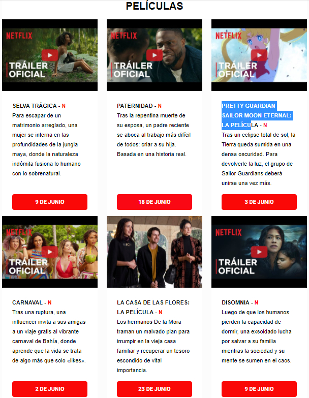 En el apartado de películas el 3 de junio llegará al catálogo "Pretty Guardian Sailor Moon: La Película", una cinta basada en el popular anime que continuará la historia de las guerreras lunares.