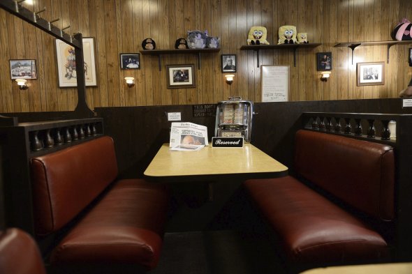 Un letrero de reservado permanece en una de las mesas de la heladería Holsten, donde James Gandolfini, rodó la escena final del último episodio de la popular serie televisiva