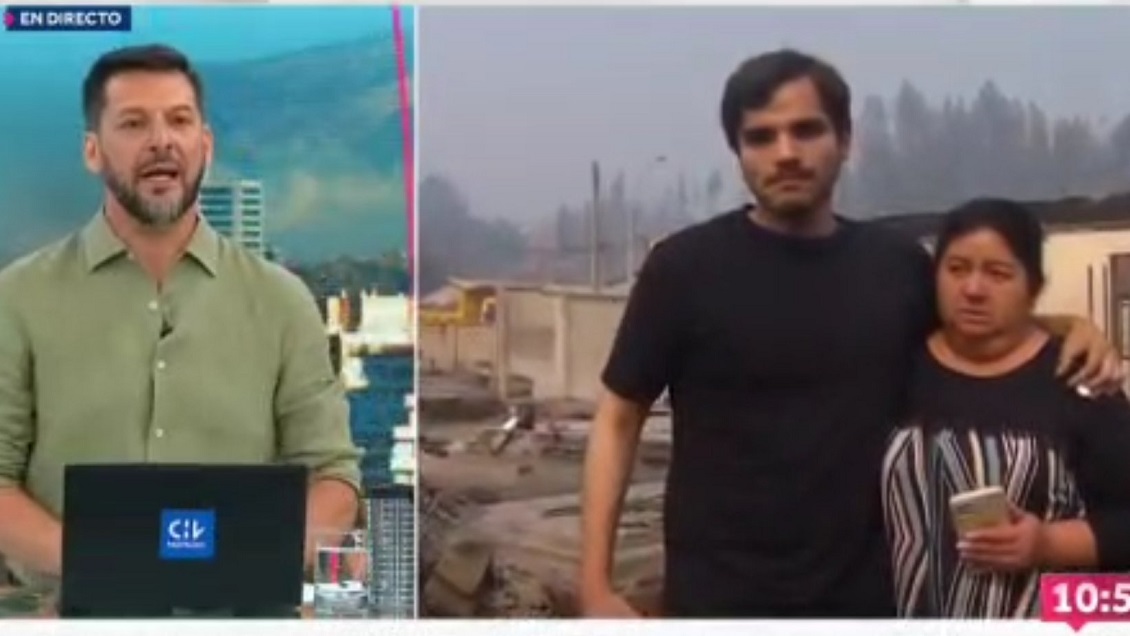 Las redes sociales se llenaron de felicitaciones para Martín Ortiz, periodista de CHV Noticias, quien decidió detener una entrevista en vivo cuando una vecina empezó a llorar, afectada por los incendios en Purén, Región de La Araucanía.