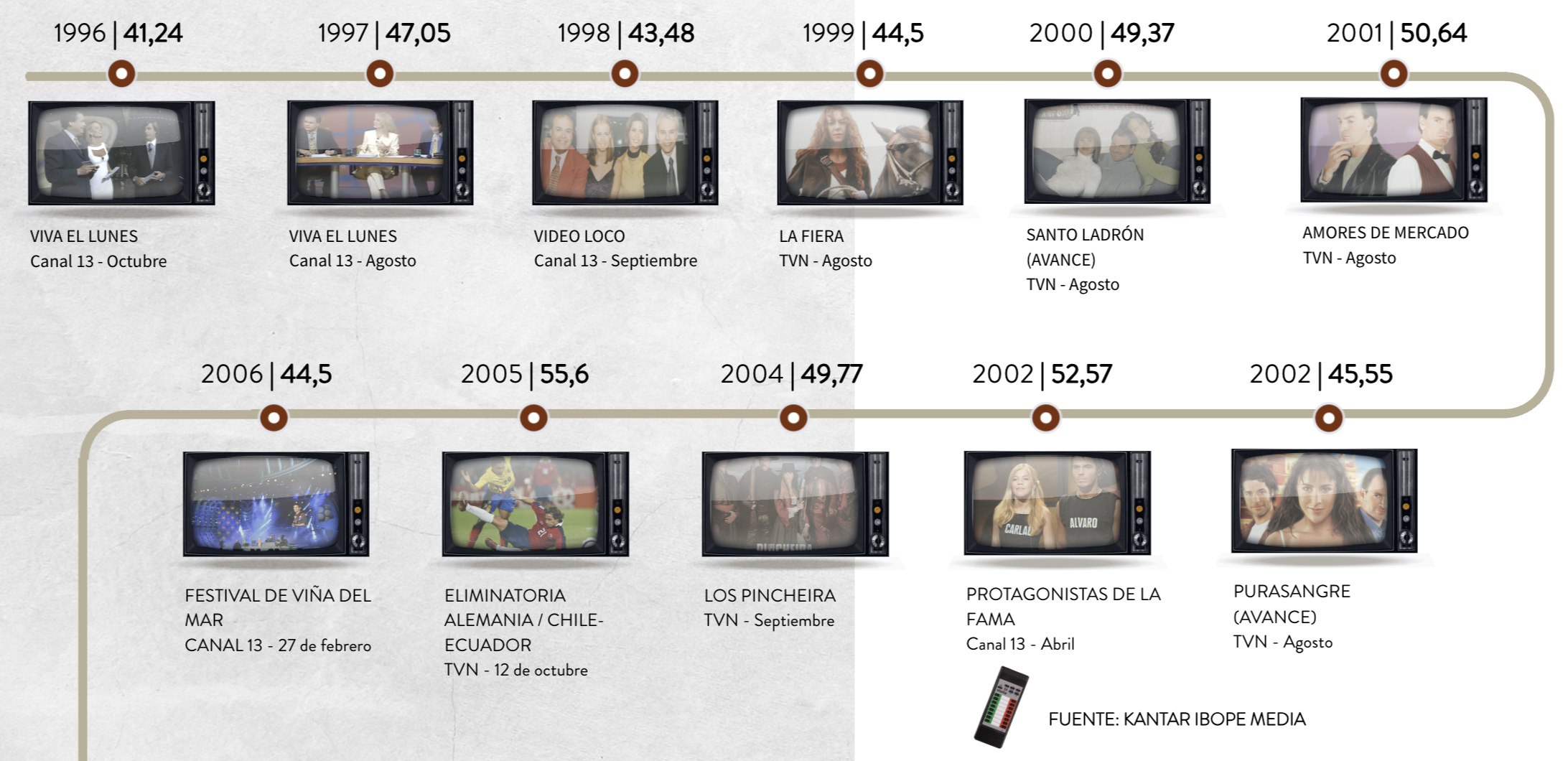 Los programas de la televisión chilena más vistos entre 1996 y 2022