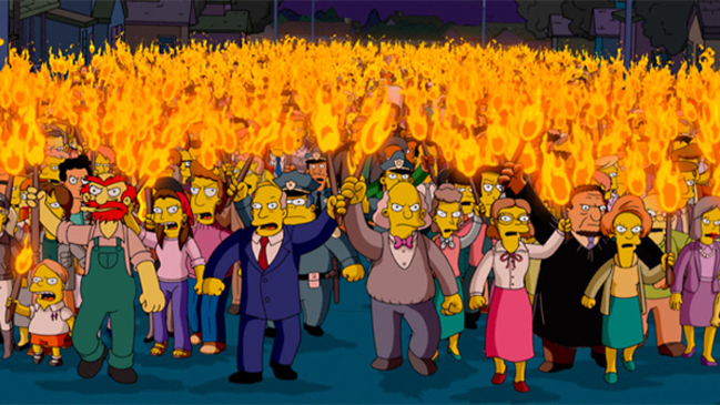 En la grabación se ve a los habitantes de Springfield marchando con antorchas y a continuación se muestran las imágenes de la protesta en La Paz, además del anuncio de la reposición de la serie.