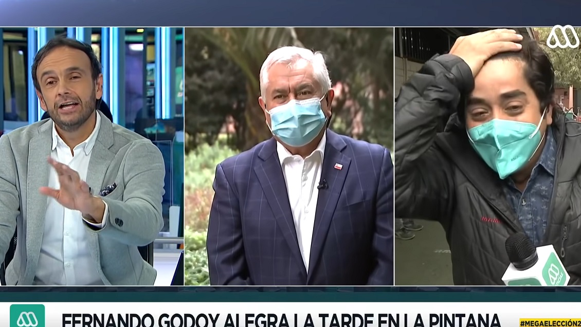 El ministro de Salud, Enrique Paris, sorprendió en vivo al actor Fernando Godoy, justo cuando lo imitaba en un despacho para Mega.