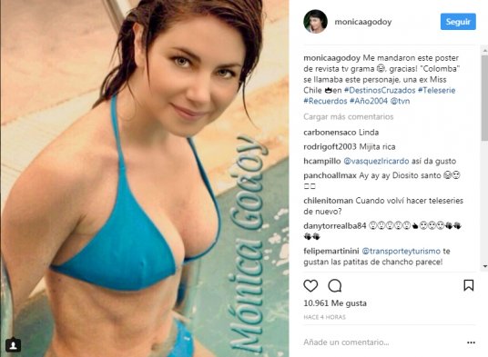 En su cuenta la actriz Mónica Godoy recordó a la sexy "Colomba Recabarren", el personaje que interpretó en la teleserie "Destinos Cruzados" de TVN.