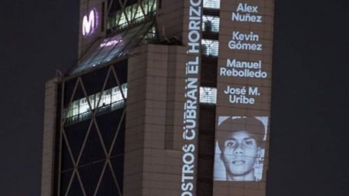 "Dignidad", "No estamos en guerra, estamos unidos" y "¿Dónde está la razón?", son algunas de las frases que Delight Lab ha plasmado en el edificio de la Plaza Baquedano utilizando la técnica visual de video mapping.