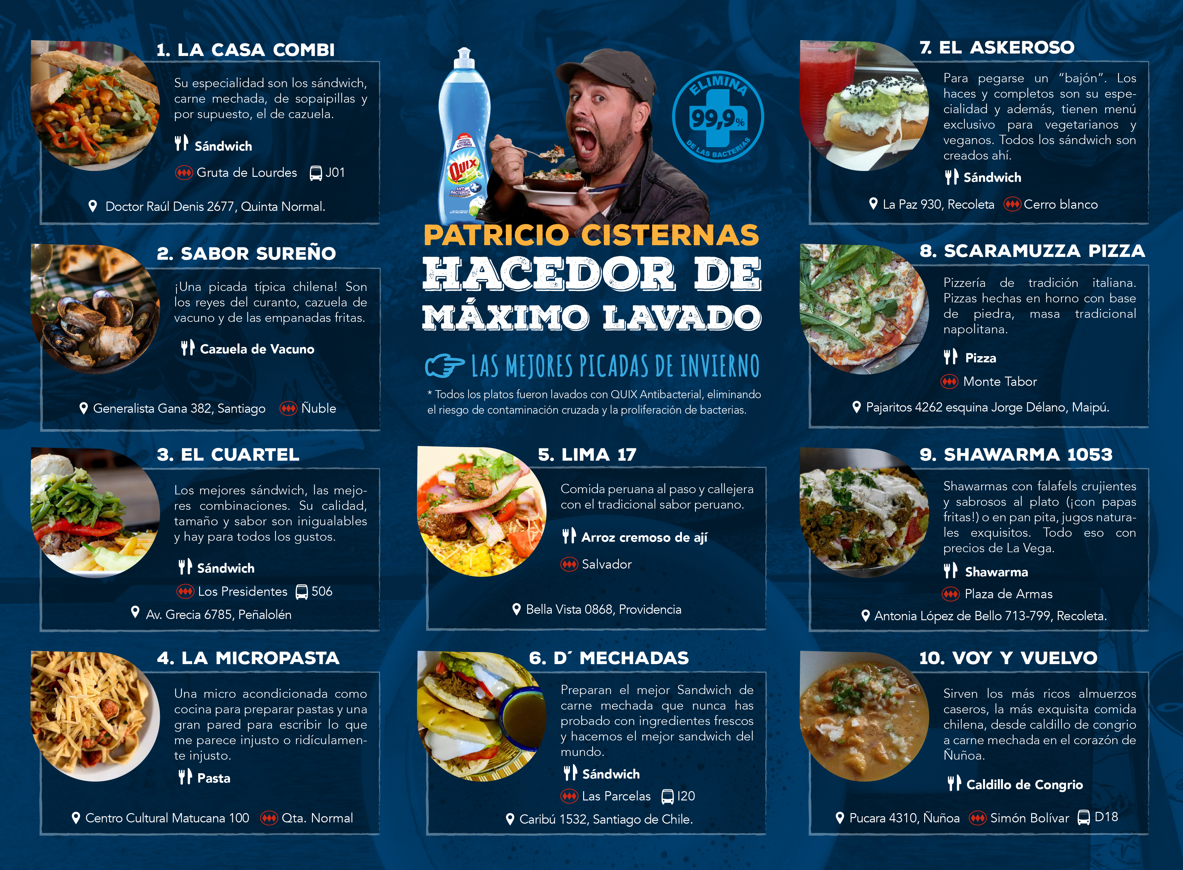 Los sandwich predominaron el top ten con La Casa Combi, El Cuartel y D' Mechadas como los máximos exponentes. Entre los completos destacó El Askeroso de Recoleta.