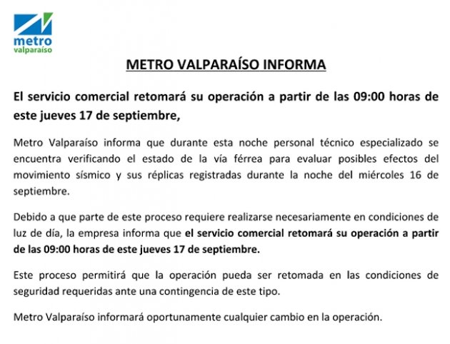 20150916202411 | Metro de Santiago señala que no se han reportado daños, en trenes ni estaciones