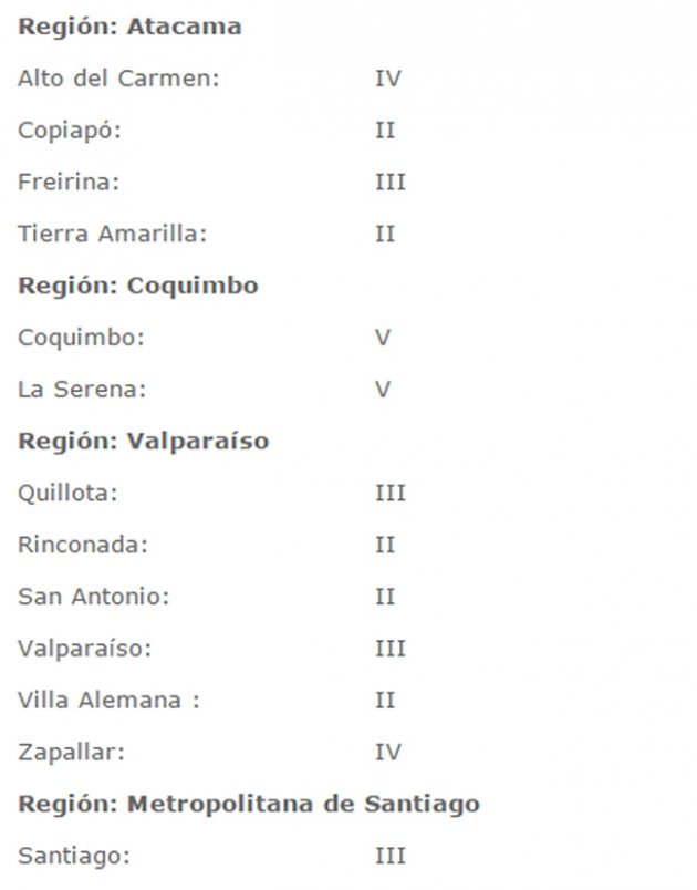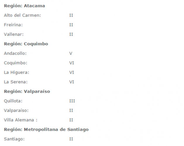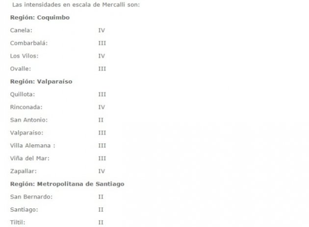 20150920002121 | Onemi reportó las siguientes intensidades de la réplica de magnitud 5,5: