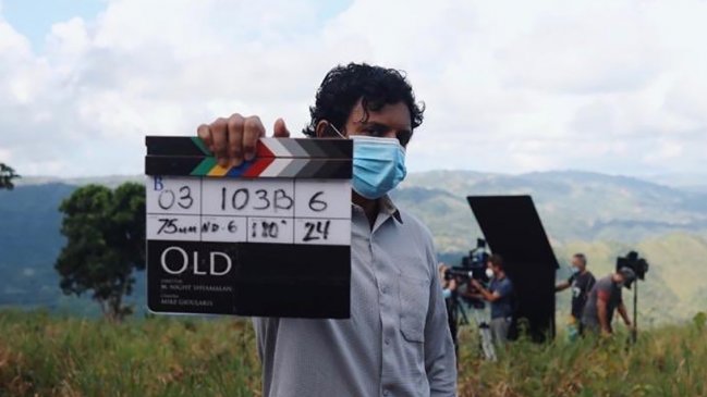 El cineasta estadounidense publicó una foto de él mismo con una mascarilla en el set junto con el título de su película número 13, "Old", sosteniendo la pizarra de la película con miembros del equipo preparando una toma de fondo.