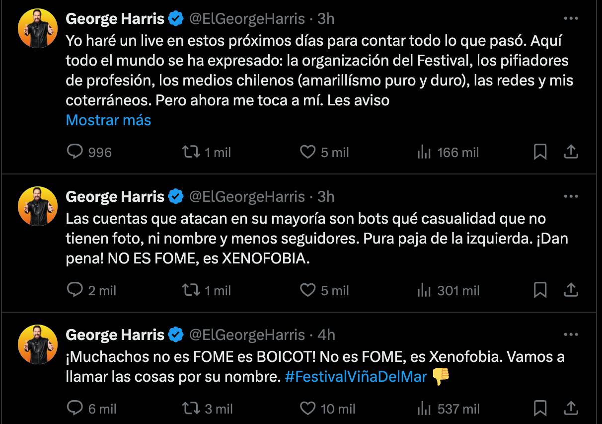 El comediante George Harris rompió el silencio tras su fracaso en el Festival de Viña 2025.