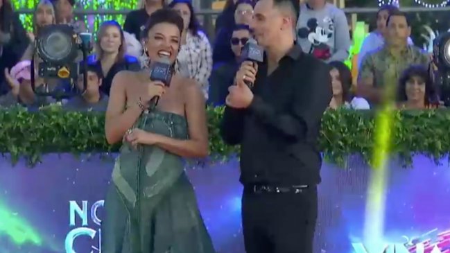 Específicamente, Sergio Lagos, quien acompañó a Reyna en la jornada previa, mostró el celular y destacó la aparición de la comunicadora en la portada de LUN luciendo su vestido para el evento, confeccionado con tela de prendas sacadas del vertedero del Desierto de Atacama.