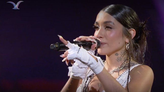 Cuando agradecía al público y leía los carteles que habían en la Quinta Vergara, la argentina leyó que habían fans que venían de Los Ángeles, Región del Biobío.