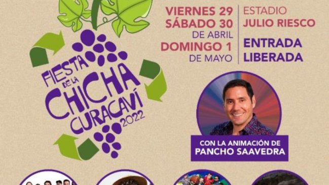 Con dos versiones pasadas canceladas debido a la pandemia, la Municipalidad de Curacaví dio a conocer que la tradicional celebración "La fiesta de la chicha" volverá a celebrarse en el Estado Julio Riesco de la misma comuna.