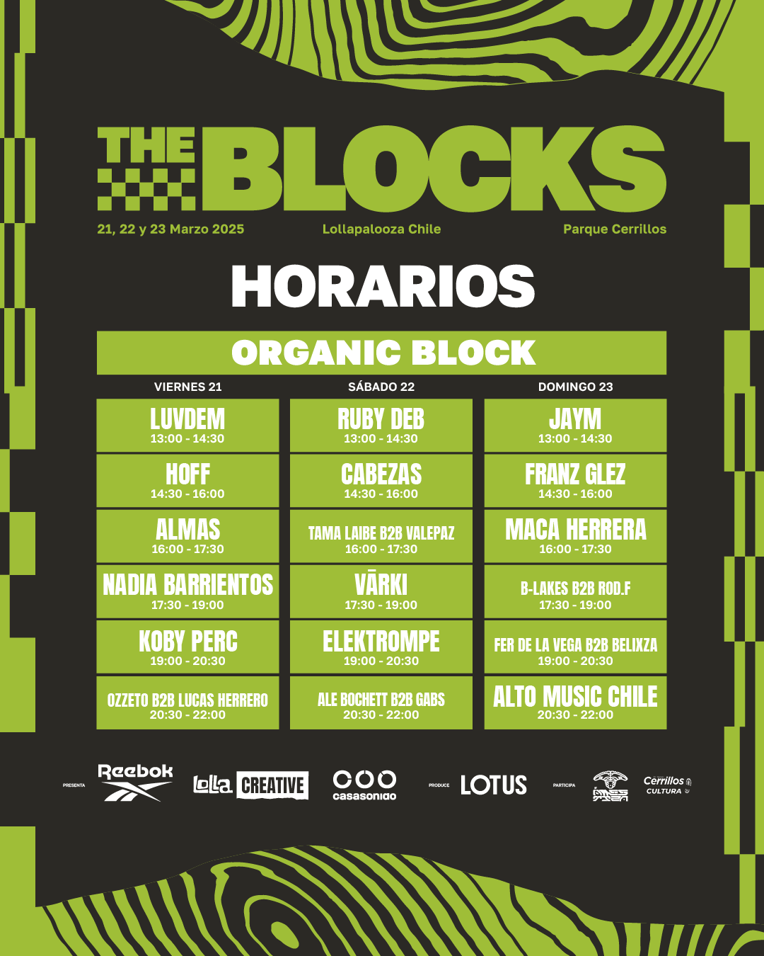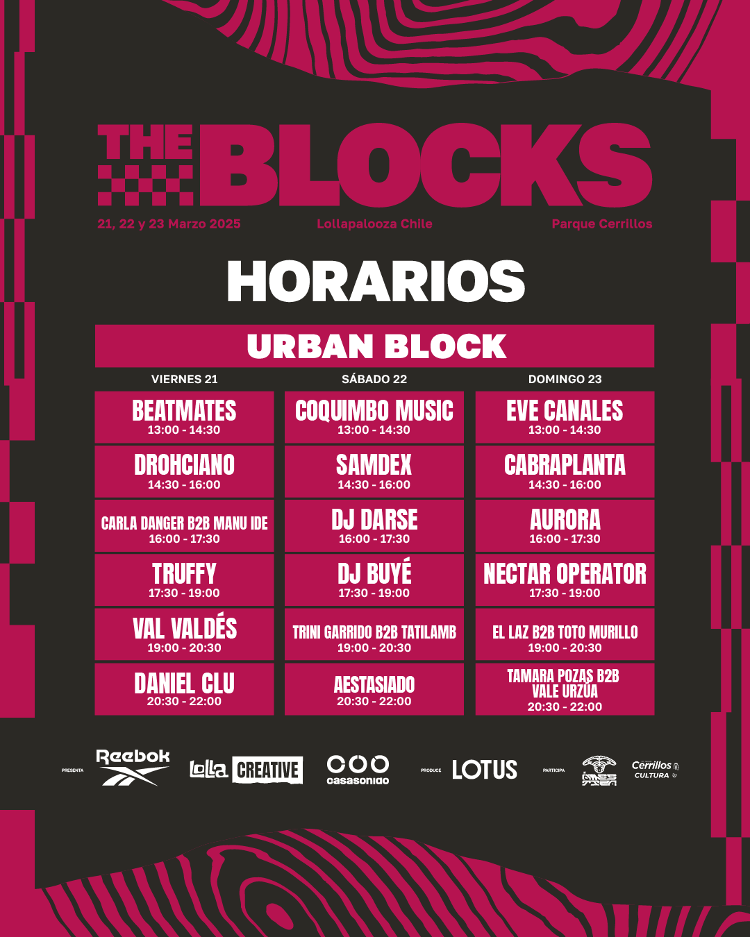 Como parte de Lollapalooza Chile, The Blocks enriquece la experiencia del festival, reconocido por su diversidad artística y compromiso con la innovación cultural.